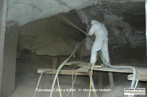 Wie es dem Großteil der Unternehmerschaft bekannt ist, eignet sich das Stollenbauverfahren ideal für die Kanalsanierung zur Aufnahme alter Kanäle im Stollen mit gleichzeitiger Neuverlegung in unterirdischer bergmännischer Bauweise. Im geringen Umfang ist innerhalb der Stollen neben einer Abwasserhaltung auch eine Grundwasserhaltung möglich. Desweiteren werden Kanäle in schwer zugänglichen Bereichen 7,50 x 4,50 m unterhalb einer doppelten Bahnlinie im Jahr 2006 erstellt. Dieser Tunnel wurde zusätzlich mit einer Spritzbetonschale gesichert. Gleissetzungen gab es bei 3,0 m Überdeckung nicht. Fotos: Unterrather Straße - Tunnelbau |